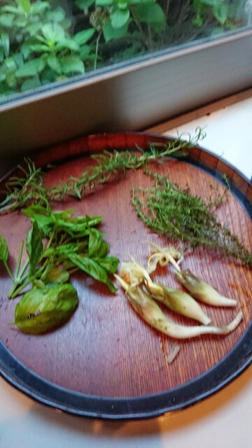 チキンに、お庭のタイム、ニンニク、
