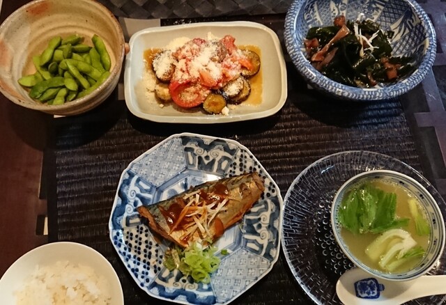 もう一品は、お茄子と、いんげんの煮物。