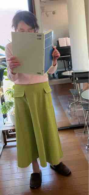 このグリーンのスカートと、