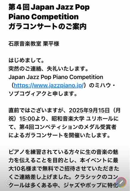 ジャズのコンペティションがありお誘いを