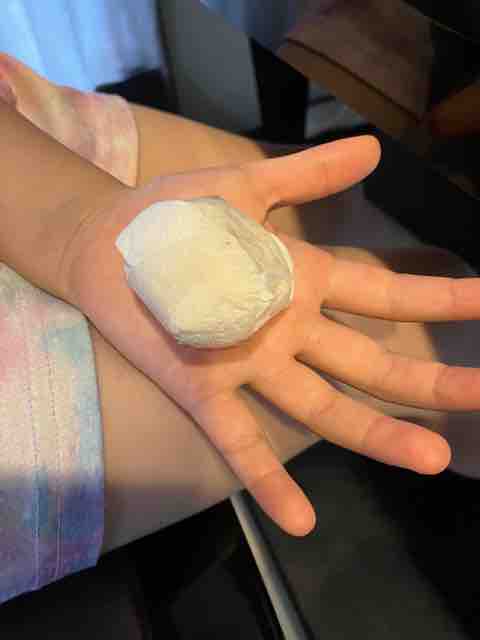 巻きにして、最後は、手のひらの裏側に